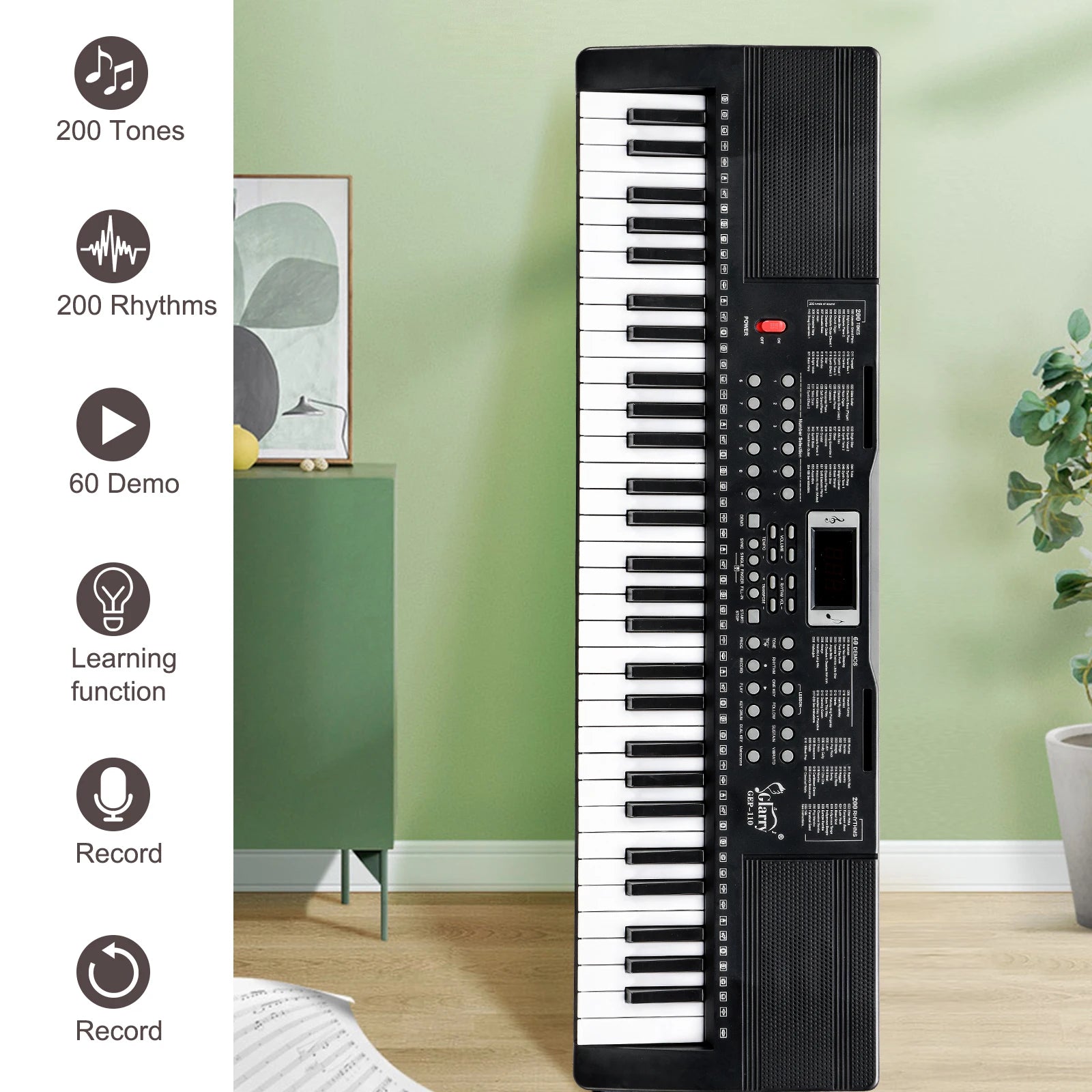 Glarry's GEP-110 61-key keyboard gives you studio-ready sound and learning-friendly features in a compact, portable package.