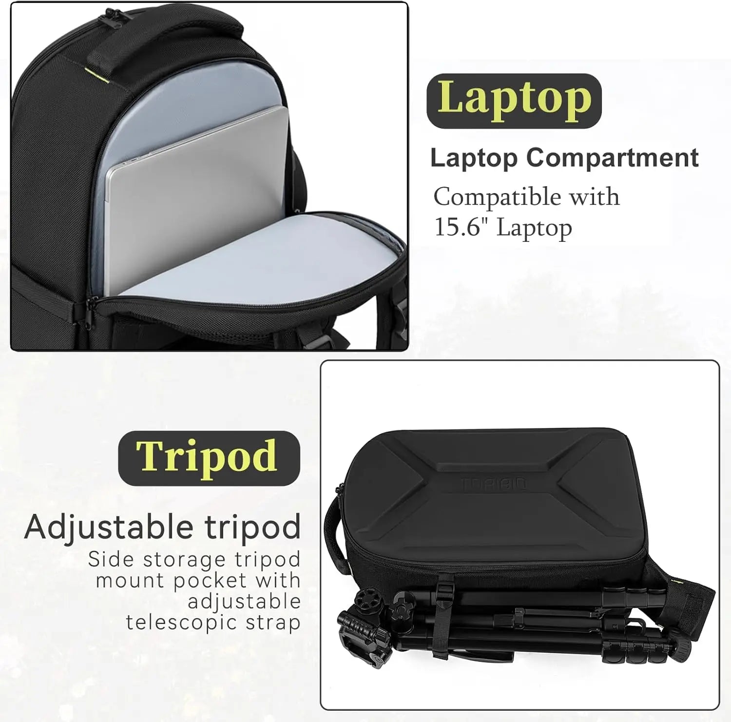 XMSJ Hardshell Camera Backpack Waterproof Tripod Holder And Laptop Compartment