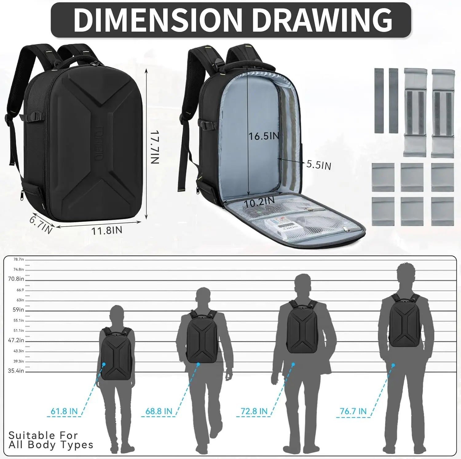 - Broad compatibility with DSLR and mirrorless bodies (Nikon, Canon, etc.) and DJI Mavic drones, plus trolley straps for easy airport travel.