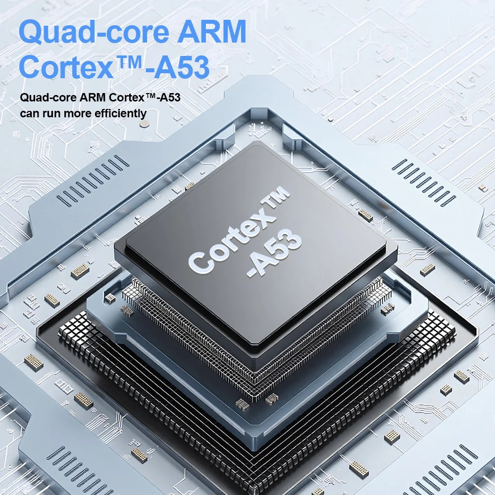 - In this box, a quad-core Cortex-A53 with 4 GB RAM and 32 GB storage powers your multitasking and apps, expandable to 256 GB.